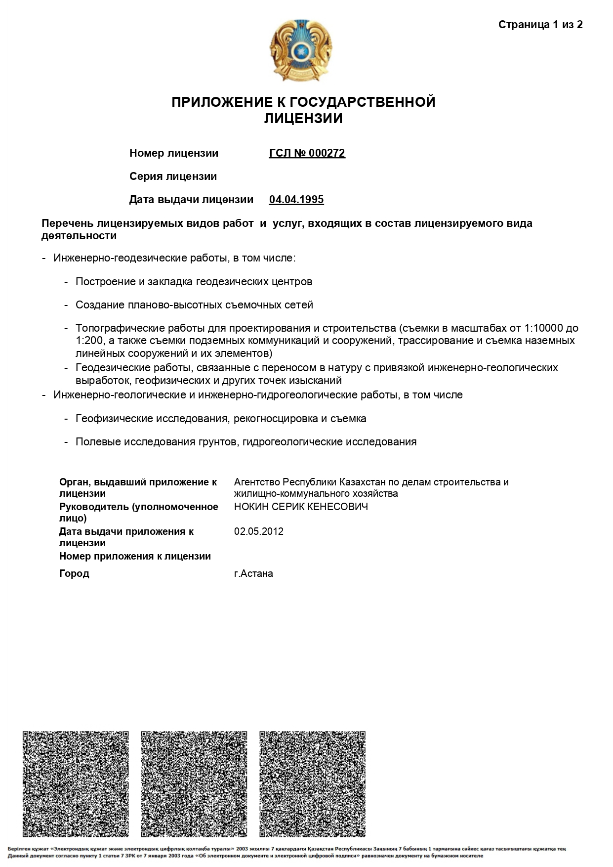 По нашим проектам построена автомобильная дорога «Кызыласкер–Кировское» с мостом через Сырдарью, автомобильная дорога через Бухтарминское водохранилище с мостом, полной длиной 1320м, реконструированы участки автомобильных дорог Ушарал-Достык, Талдыкорган-Калбатау-Усть-Каменогорск и др.